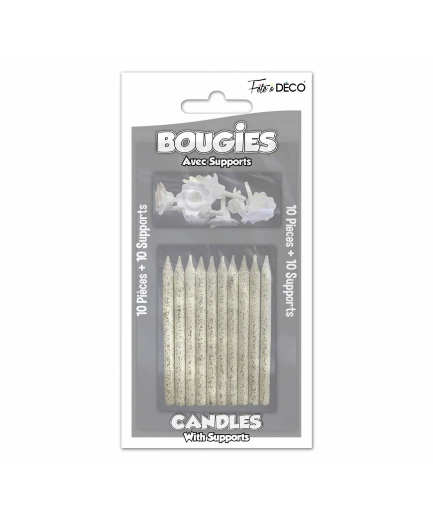 BOUGIE PAILLETTE X10 AVEC SUPPORTS BLANC