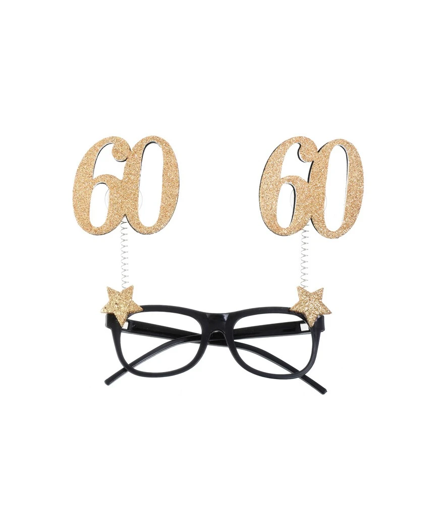 LUNETTES 60 ANS LUNETTES PAILLETEES OR 15X16CM